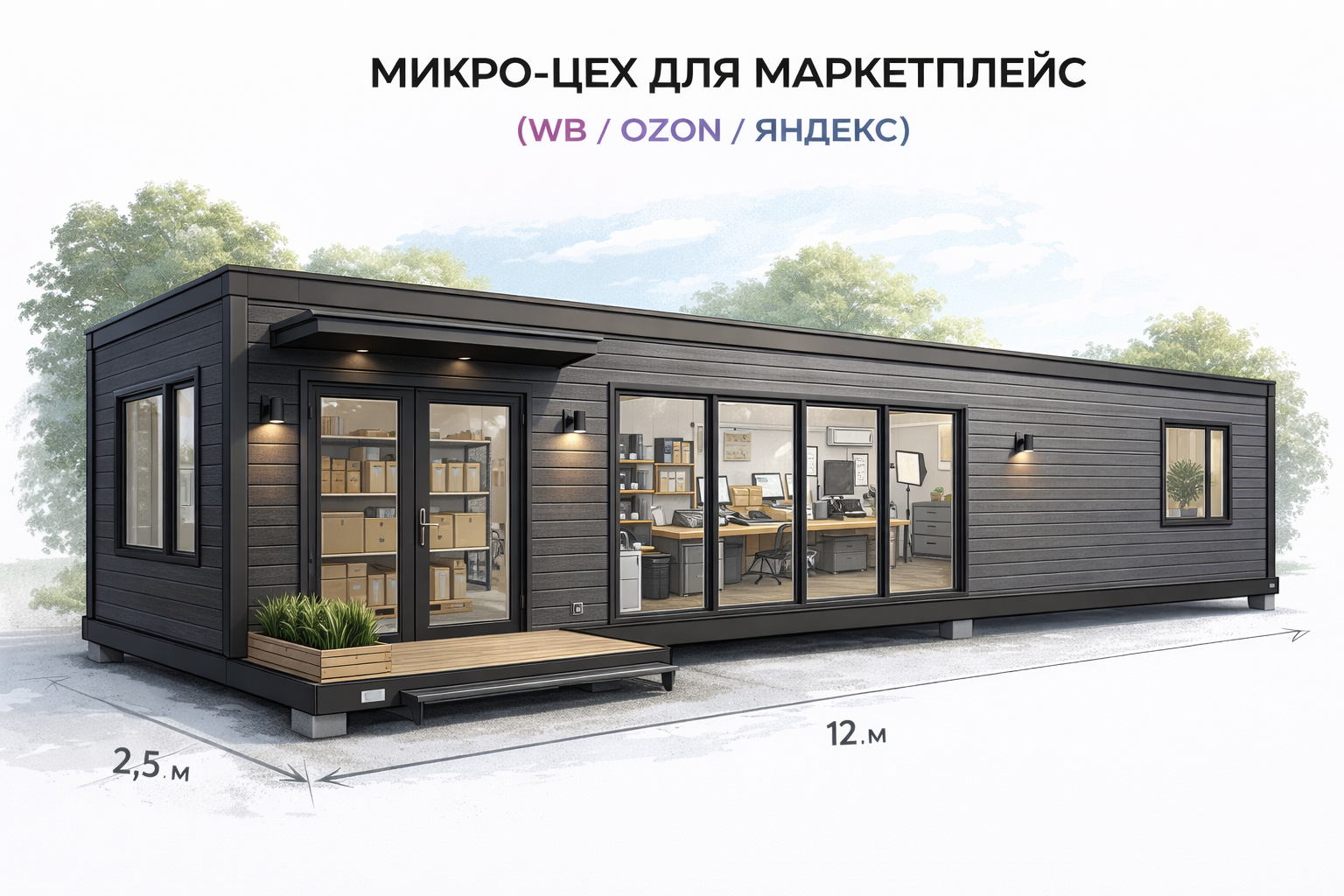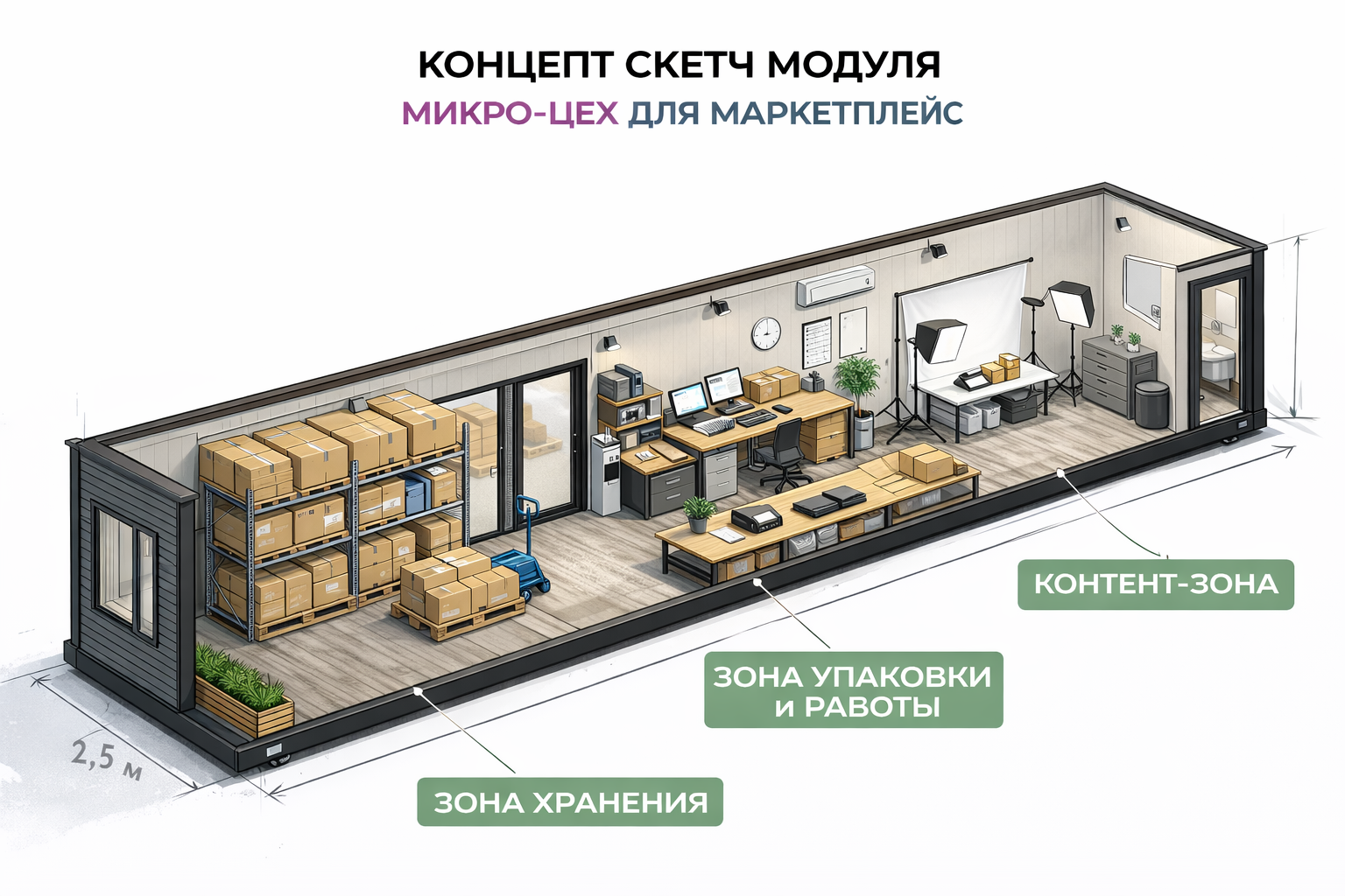 Готовый модуль под бизнес с воротами, утеплением, электрикой, освещением и возможностью адаптации под вашу задачу.